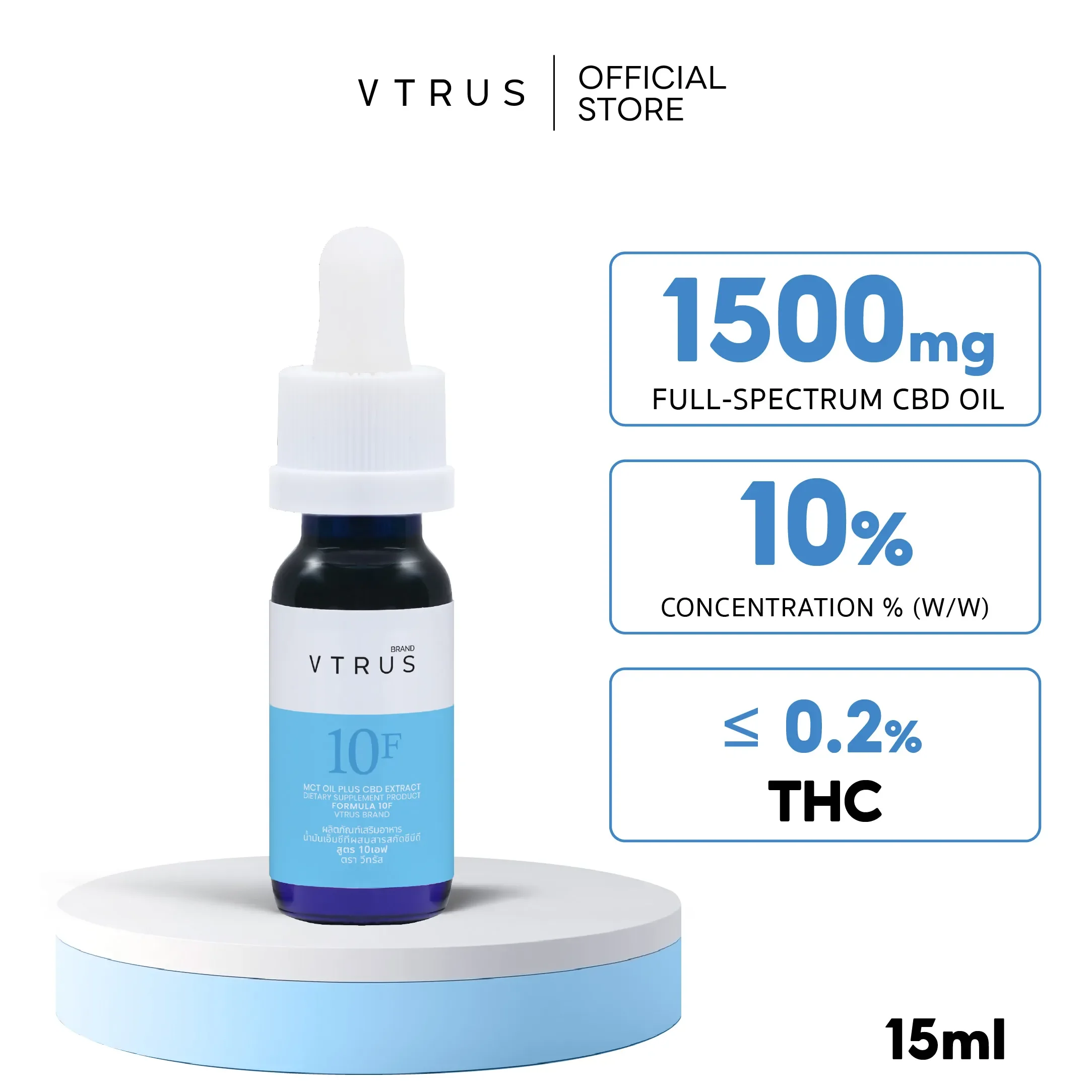 MCT Oil Plus CBD Extract Formula 10F (1,500 mg.) VTRUS Brand registered Number 50-1-07967-5-0003
